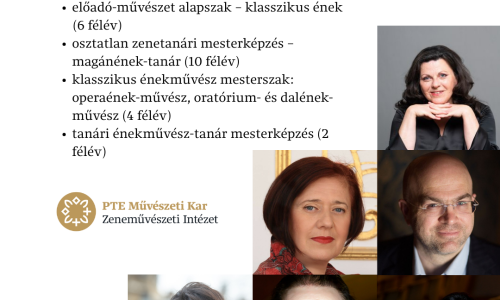 HÍREK Sikereink Tovább Kiemelt Nyitvatartás 2025-26 / Opening hours in the 2025-26 academic year Közérdekű … 2025.12.16. Tovább Magánénekes képzések 2026 szeptemberétőlZeneművészeti IntézetZene 2026.01.28. Vasarely új kontextusban – jubileumi évkezdés a JPM-benDesign és Médiaművészeti Intézet, Képzőművészeti IntézetFestészet, Képzőművészet 2026.01.24. Zenekarvezetés szakirány Kocsár Balázs osztályábanZeneművészeti IntézetZene 2026.01.23. Mindenki pécsi akar lenni - a nagybőgősök is!Zeneművészeti IntézetZene 2026.01.22. Ütő Gusztáv kapja idén a Háromszék kultúrájáért díjat Sepsiszentgyörgyi Képzőművészeti IntézetKépzőművészet 2026.01.21. Szuverén Tervezőgrafikai Díjat kapott Prell NorbertTervezőgrafika TanszékTervezőgrafika 2026.01.20. További hírek ESEMÉNYEK feb. 09 2026 februári nyílt napok a Művészeti Karon 2026.02.09. 08:00 - 2026. 02.12. 18:00 PTE Művészeti Kar, Pécs, Zsolnay-negyed Nyílt nap Design és Médiaművészeti Intézet Képzőművészeti Intézet Zeneművészeti Intézet jan. 30 Online fogadóóra és szülői értekezlet 2026.01.30. 15:00 - 2026. 01.30. 16:00 MS Teams (online) jan. 29 NKKP 2026 – PTE online tájékoztató 2026.01.29. 13:00 - 2026. 01.29. 14:00 Online esemény (MS Teams) További események KÉPZÉSEK Alapképzések BA/BSc Tovább Mesterképzések Tovább Osztatlan képzések Tovább Szakirányú továbbképzések Tovább Képzések PÁLYÁZATOK PTE "Utazó Nagykövet" pályázat Határidő: 2026. december 15. - 23:59 Konferencia-előadói jelentkezés a Bódy80 EmlékkonferenciáraElőadás Határidő: 2026. május 31. - 12:00 Culture Moves Europe program: pályázat művészeknek és kulturális…Képzőművészet, Tárgyalkotás, Zene Határidő: 2026. április 30. - 23:59 A Nádor Galéria nyílt pályázati felhívása 2026Nádor GalériaNádorFestészet, Képzőművészet, Szobrászat, Tárgyalkotás Határidő: 2026. február 26. - 23:59 Pályázat köztéri alkotásra: Setét Jenő élete és munkássága Határidő: 2026. február 26. - 23:59 Álarcok workshop (Romák a Változásért projekt) Határidő: 2026. február 8. - 23:59 Zsolnay Fényfesztivál X.: pályázat a Fény Útján való megjelenésre Határidő: 2026. február 1. - 23:59 Káli Art Inn Szobor pályázat 2026Szobrászat Határidő: 2026. január 31. - 23:59 Összes pályázat