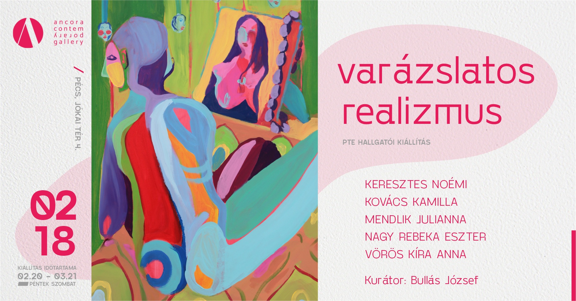 A pécsi Ancora Galéria az év első kiállításaként idén is a Pécsi Tudományegyetem Művészeti Kara hallgatói számára biztosít bemutatkozási lehetőséget. Az idei tárlat anyagát Bullás József Munkácsy-díjas festőművész, Karunk festőtanára válogatta össze "VARÁZSLATOS REALIZMUS" címen.