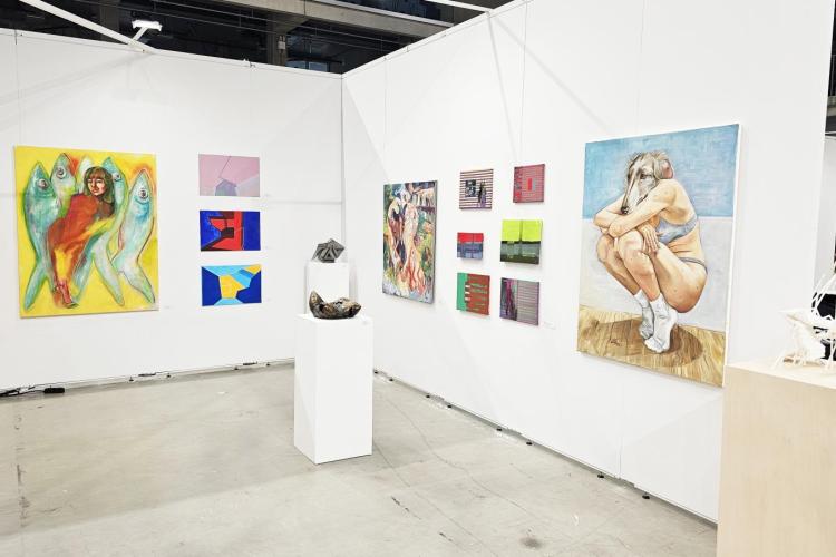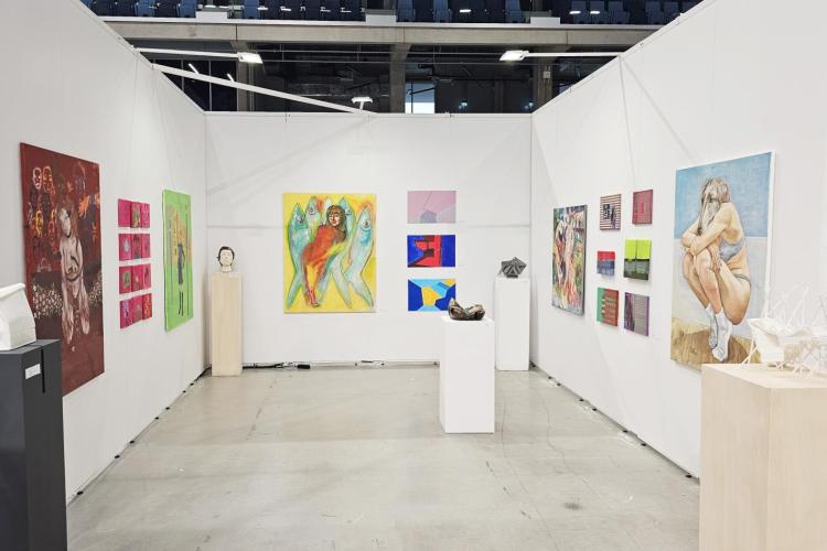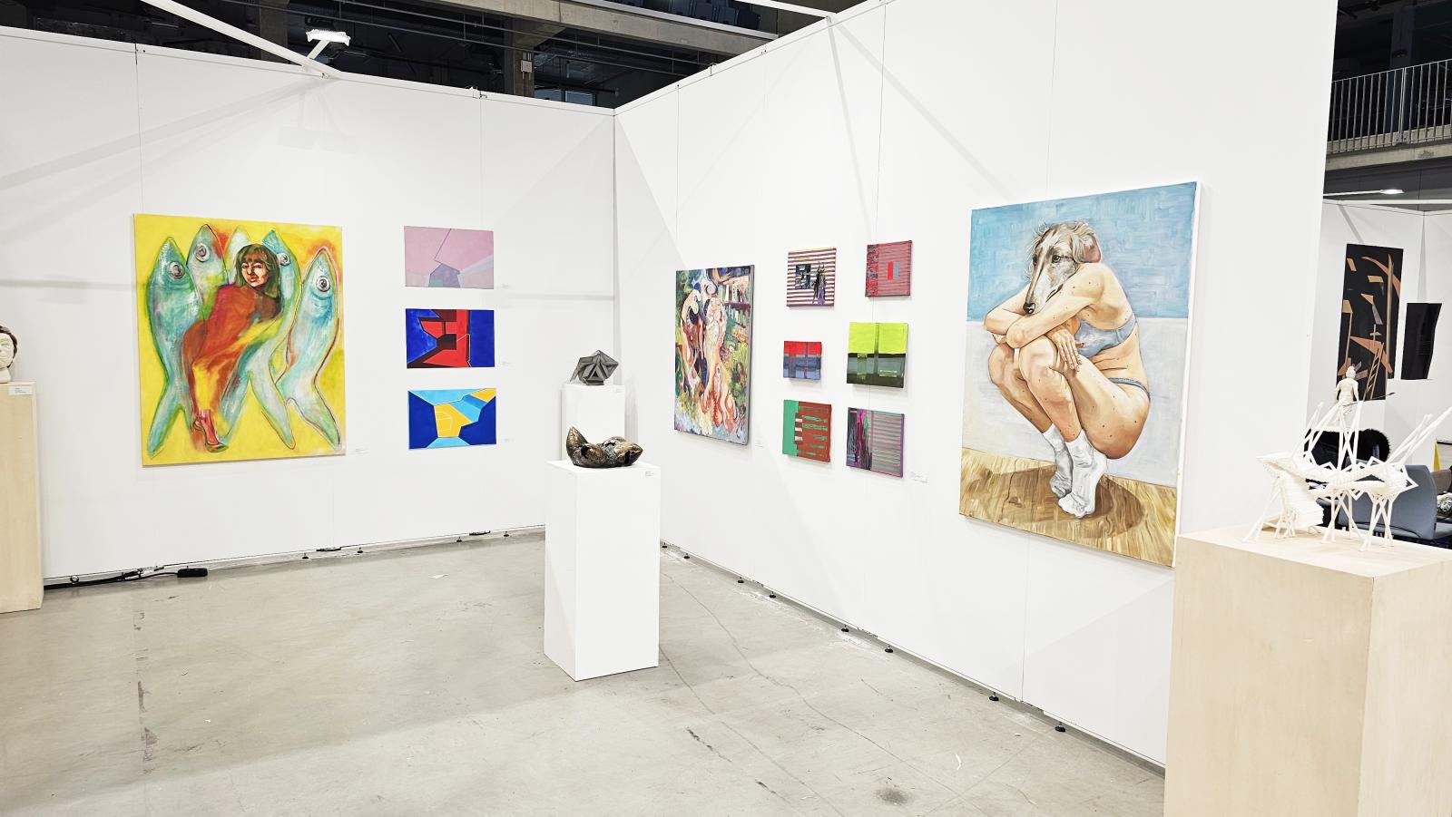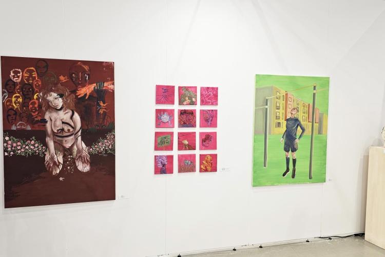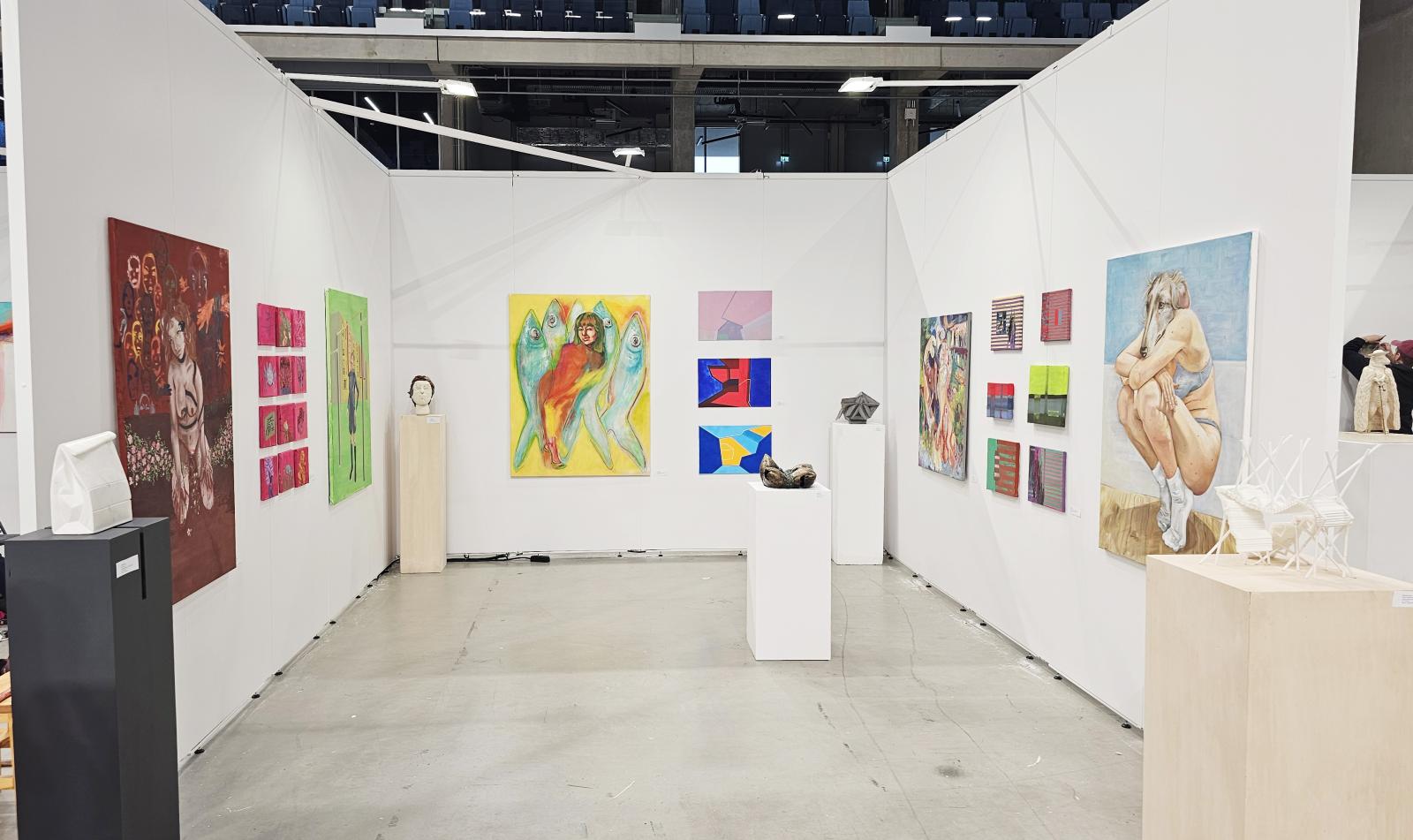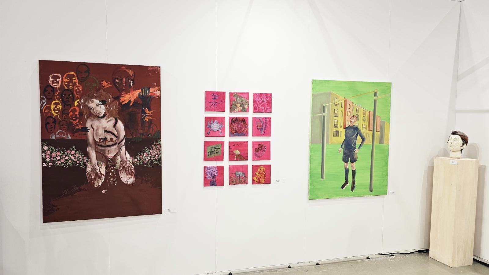 A 2025-ös Art Market Budapest Művészeti Karos standján kiállító hallgatók munkái.