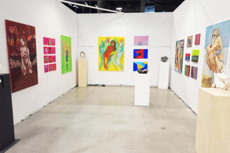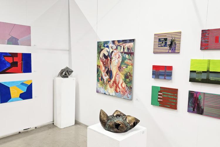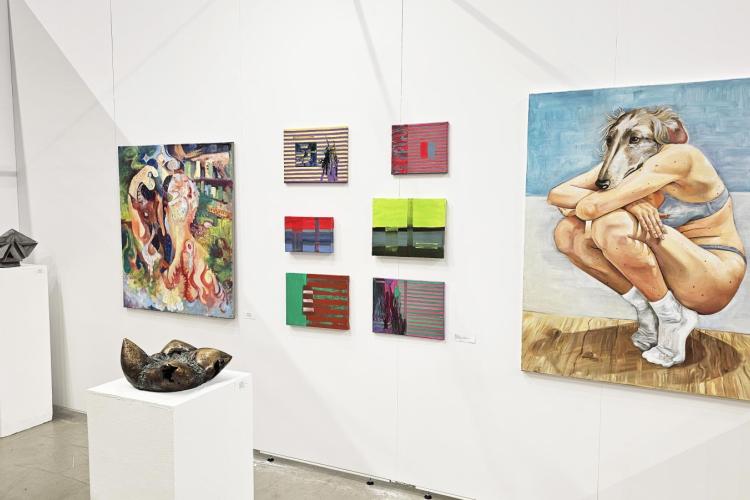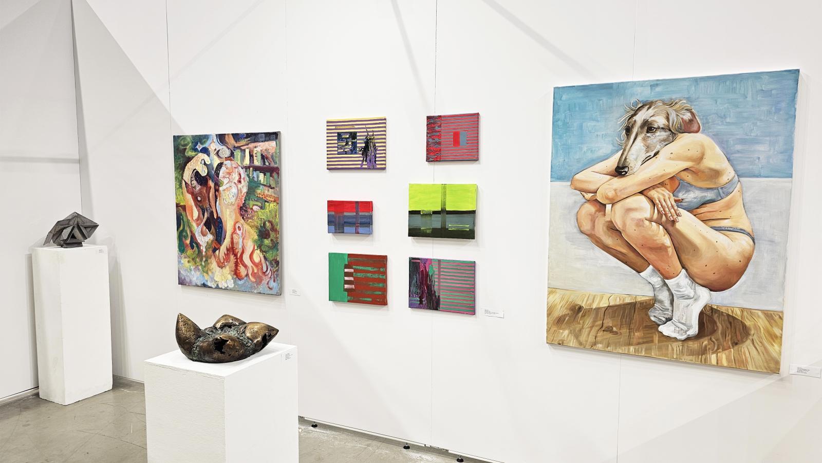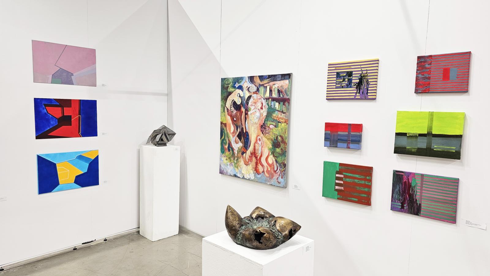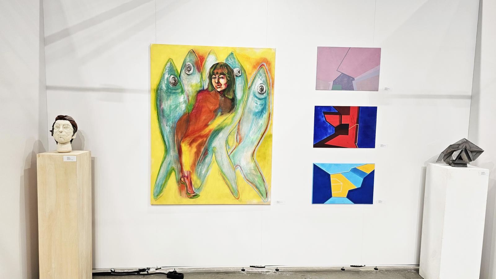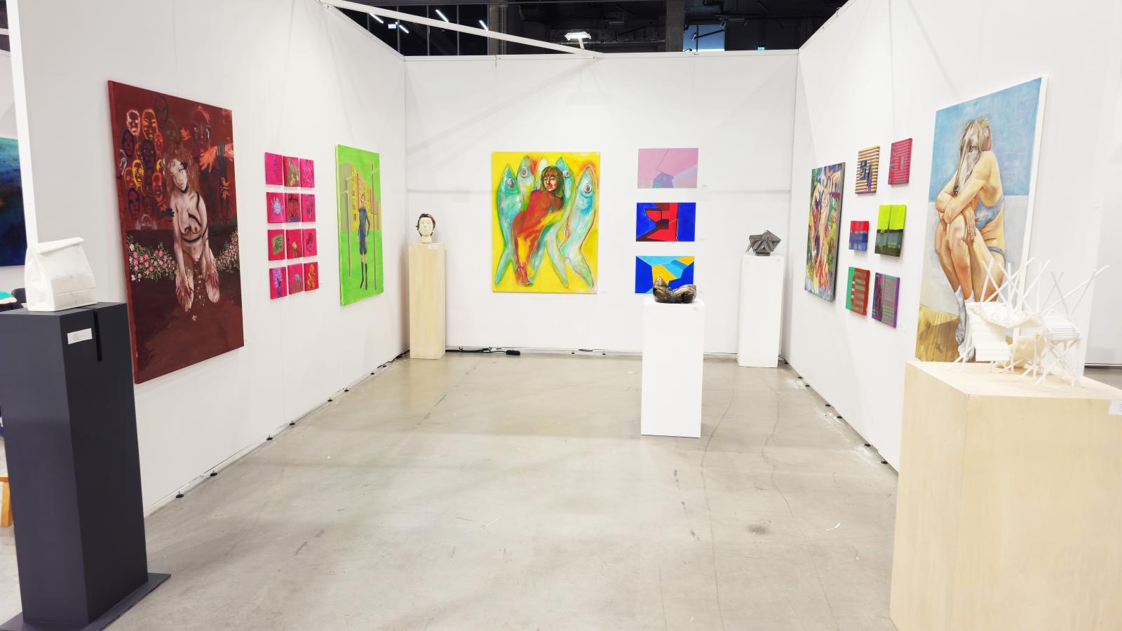 A 2025-ös Art Market Budapest Művészeti Karos standján kiállító hallgatók munkái.