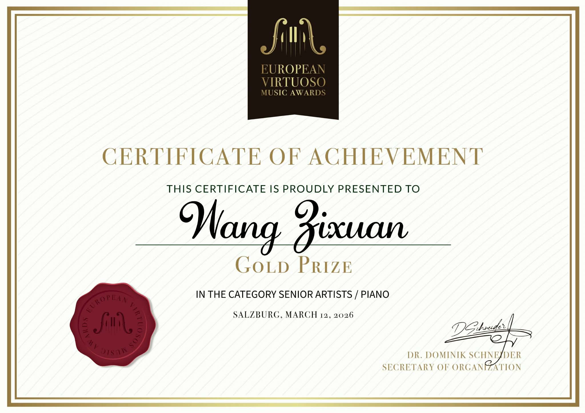 A versenyen Senior Artists kategóriában 1. évfolyamos zongoraművész mesterszakos hallgatónk, Wang Zixuan (Kína) aranyérmet szerzett; a versenyre való felkészülésben főtárgytanára, dr. Szokody Anikó zongoraművész segítette.